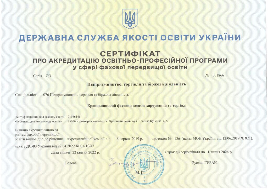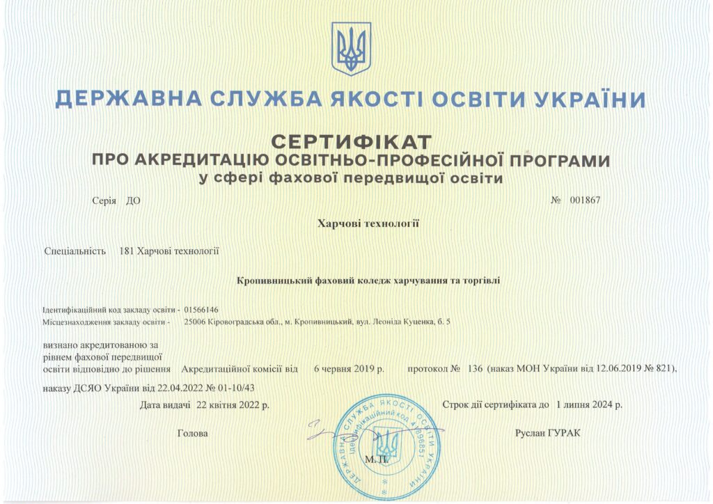 Кропивницький фаховий коледж харчування та торгівлі