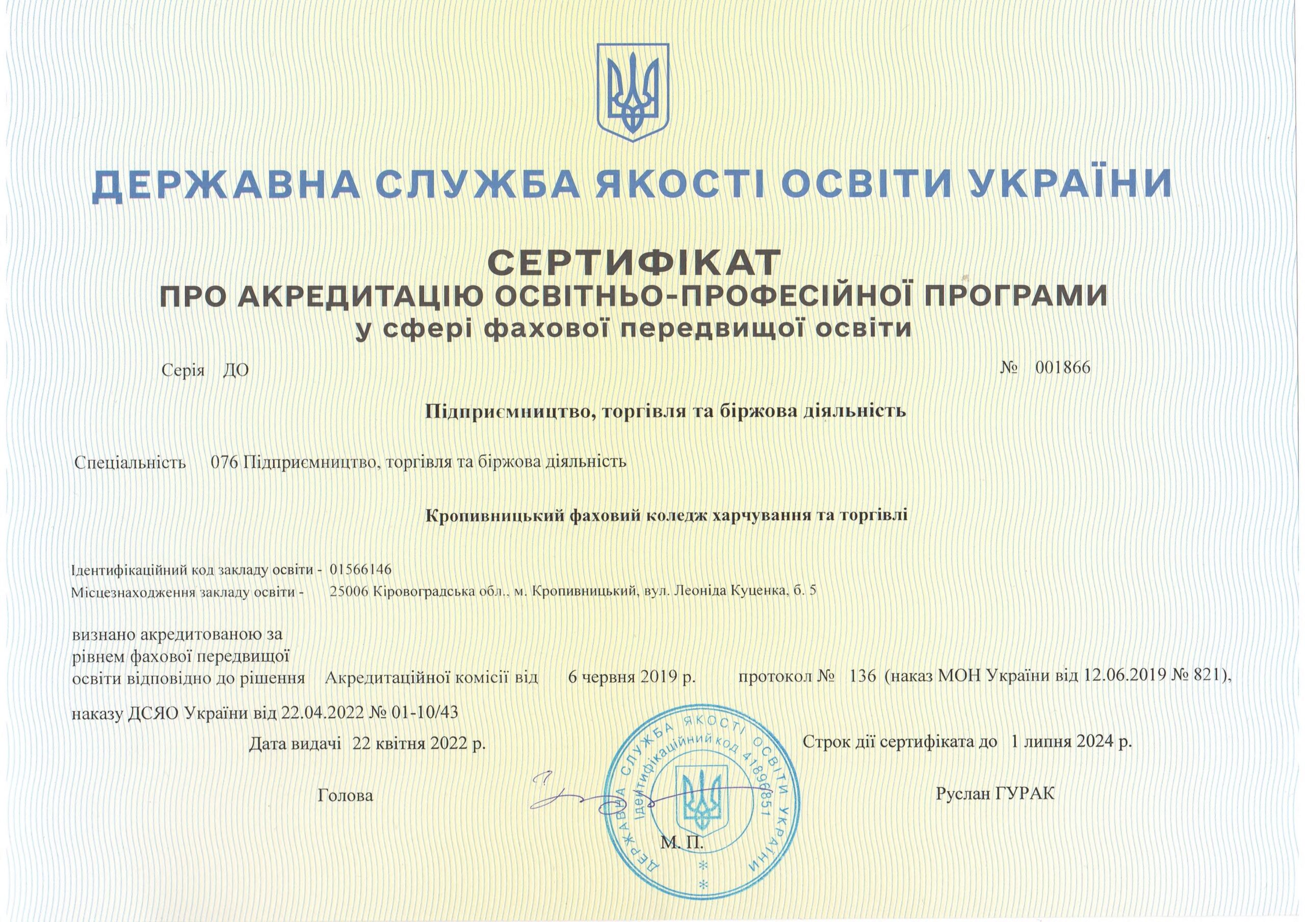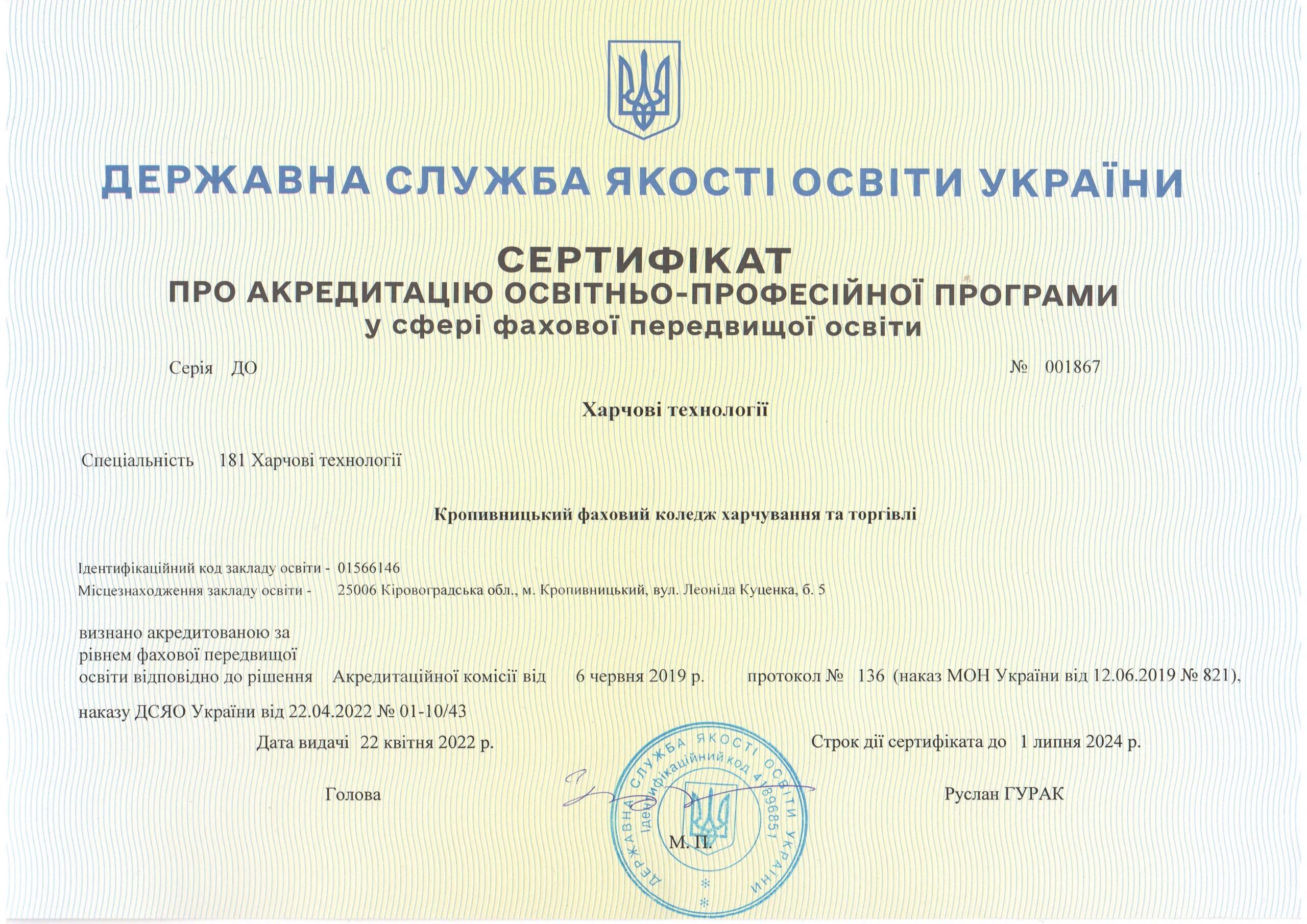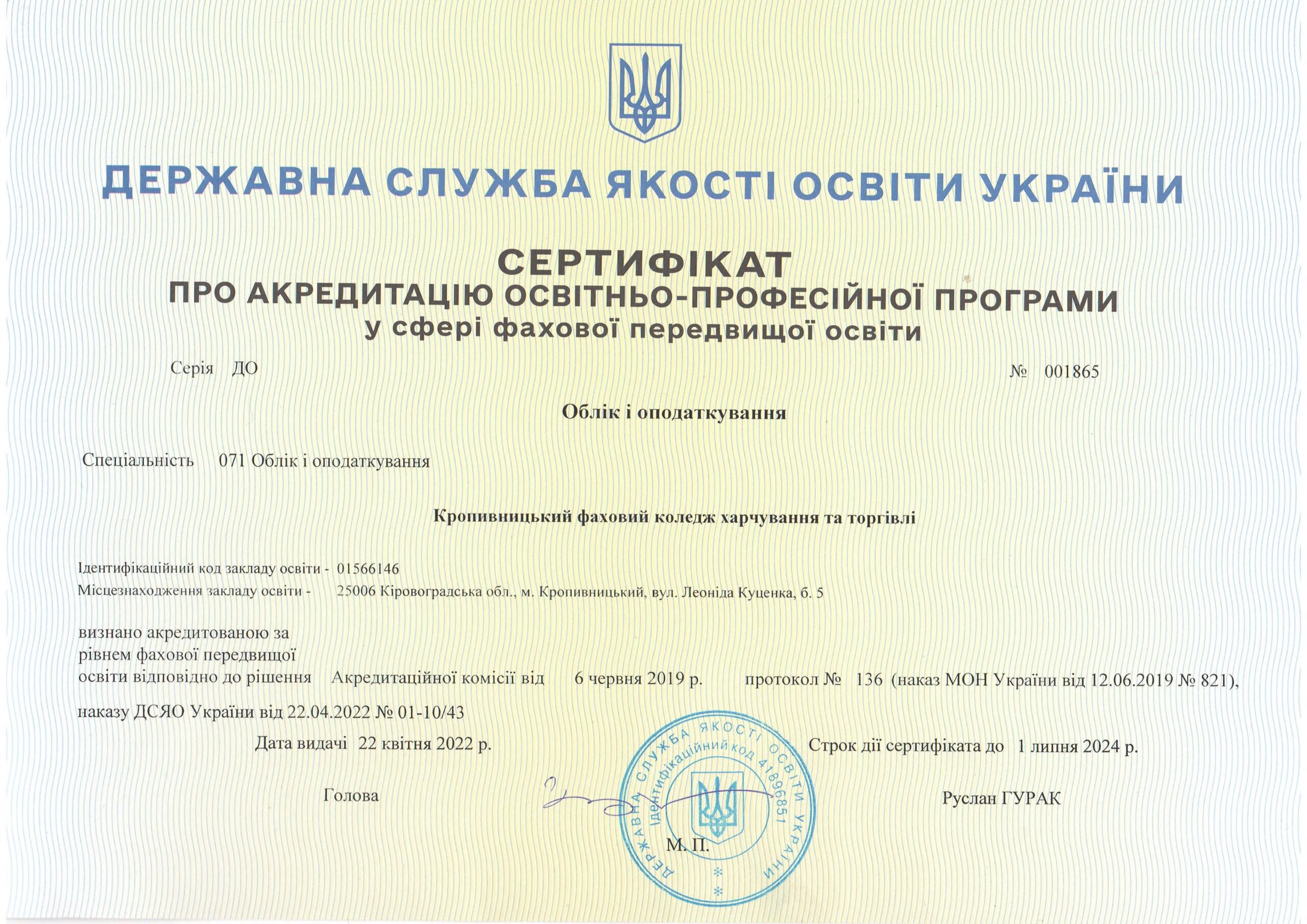 Сертифікати про акредитацію